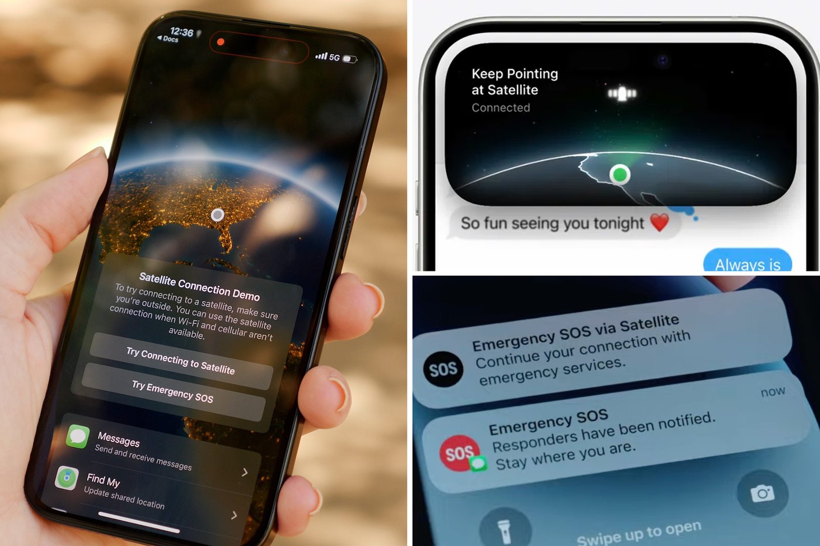 If no service is available, a “Satellite SOS” option will appear along with an emergency questionnaire and the option to alert emergency contacts.